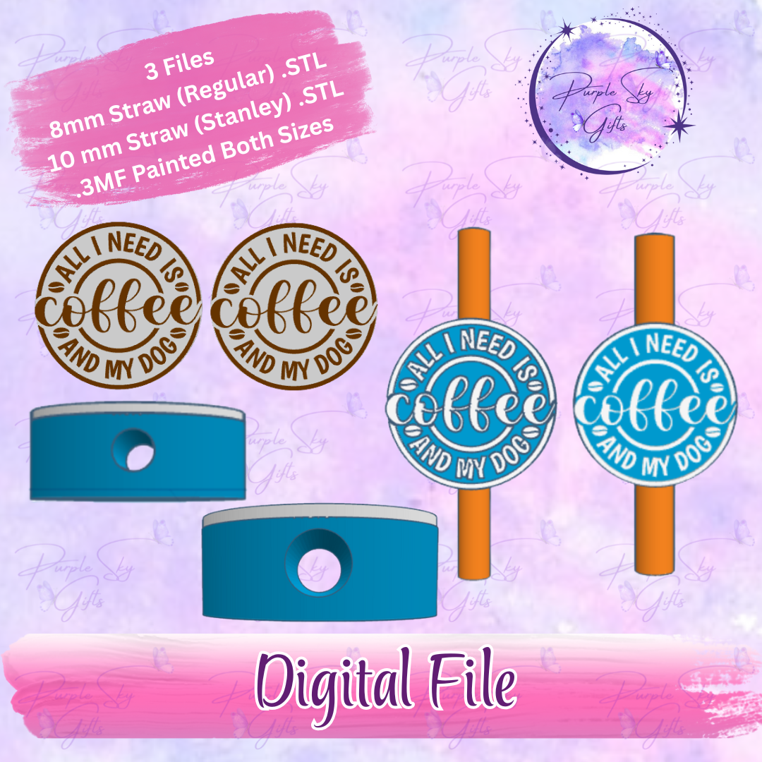 All I Need Is Coffee And My Dog 8mm and 10mm STL and 3MF DIGITAL FILES For Straw Topper