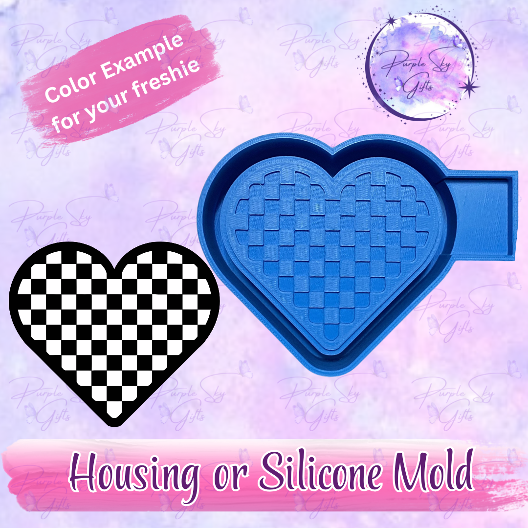 Checkered Print Heart Freshie Housing or Silicone Mold