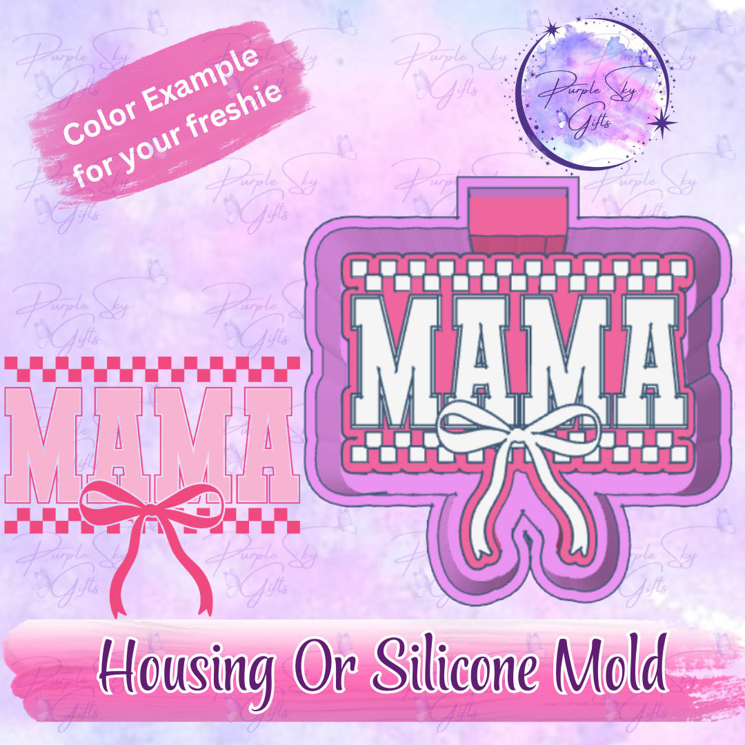 Checkered Print Mama With Bow Freshie Mold Housing or Silicone Mold