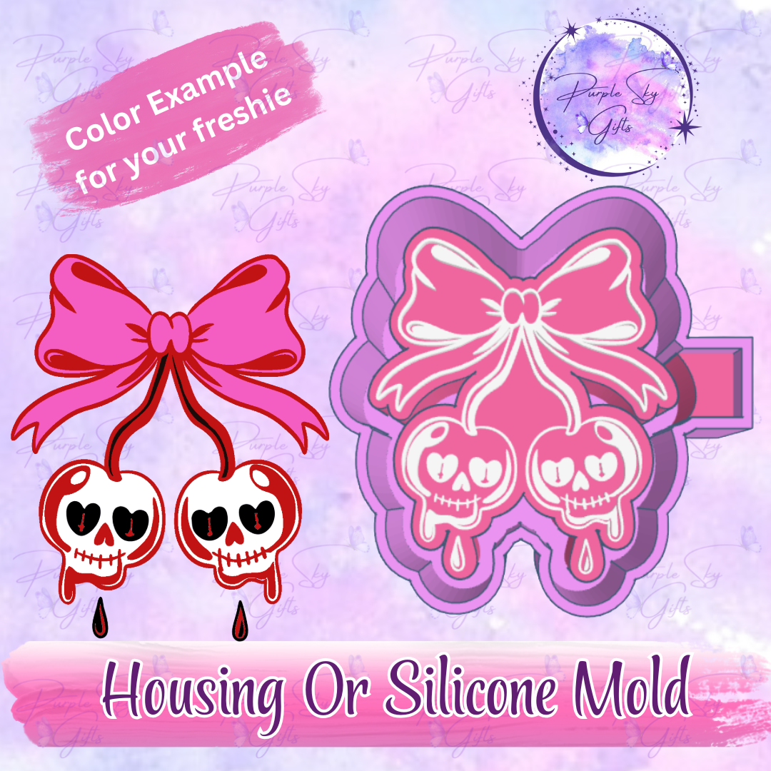 Cherry Skulls With Bow Freshie Mold Housing or Silicone Mold