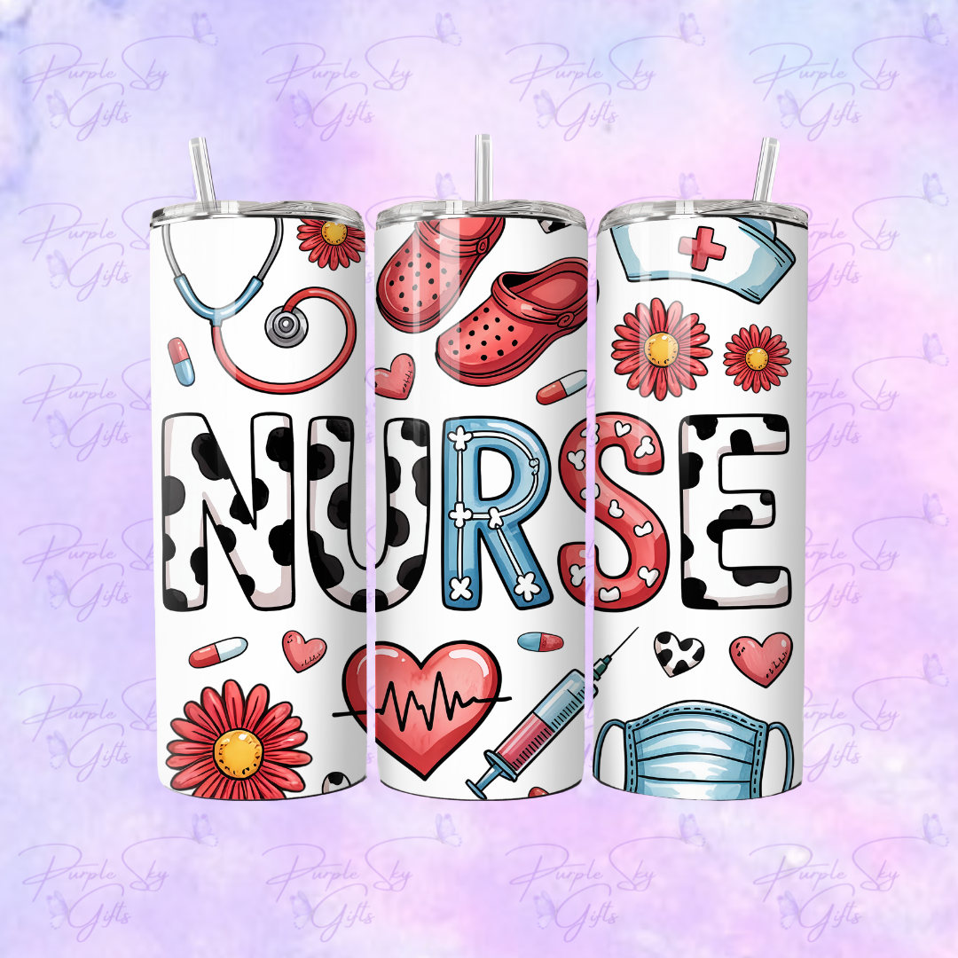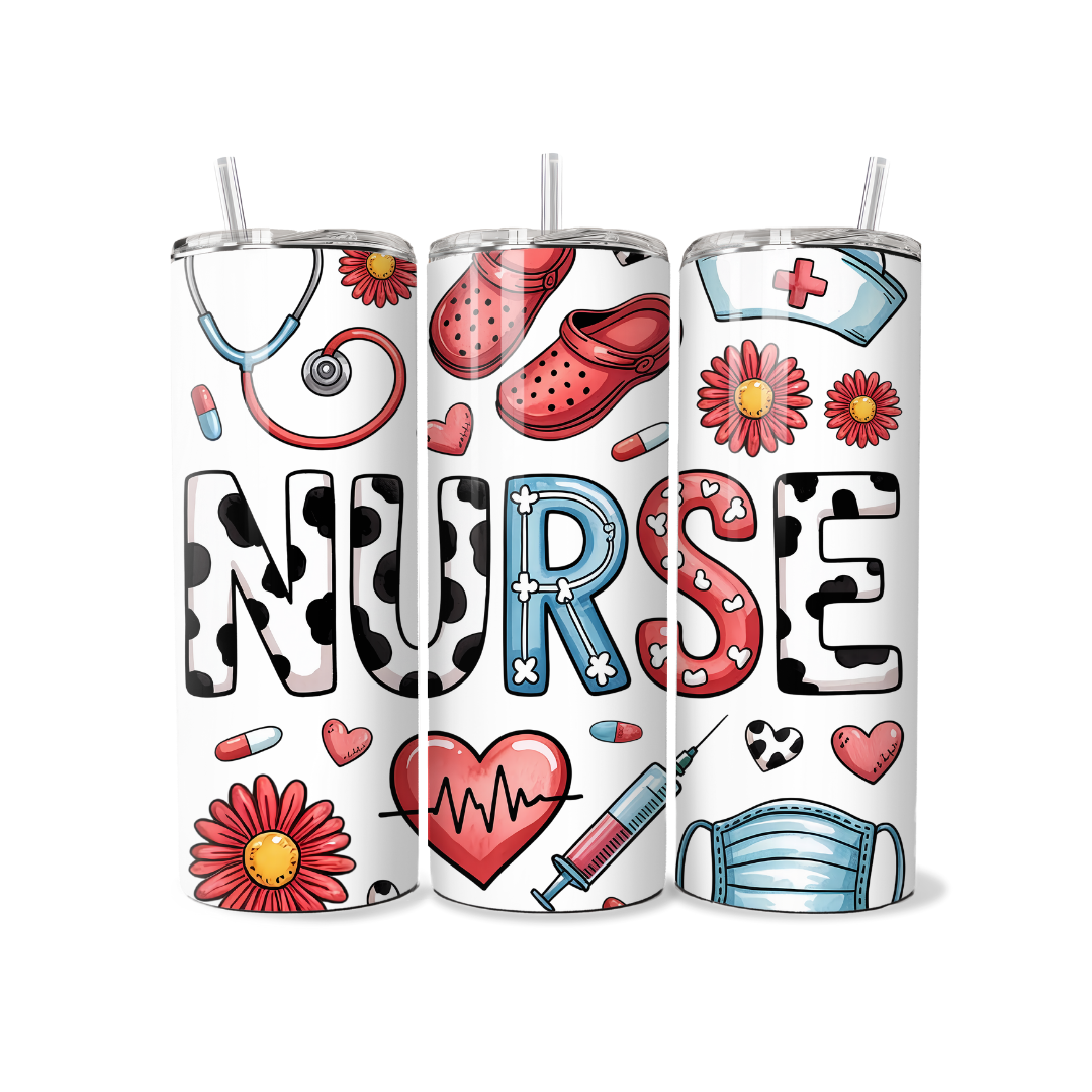 Denim Western Cow Print Nurse 20 oz Tumbler