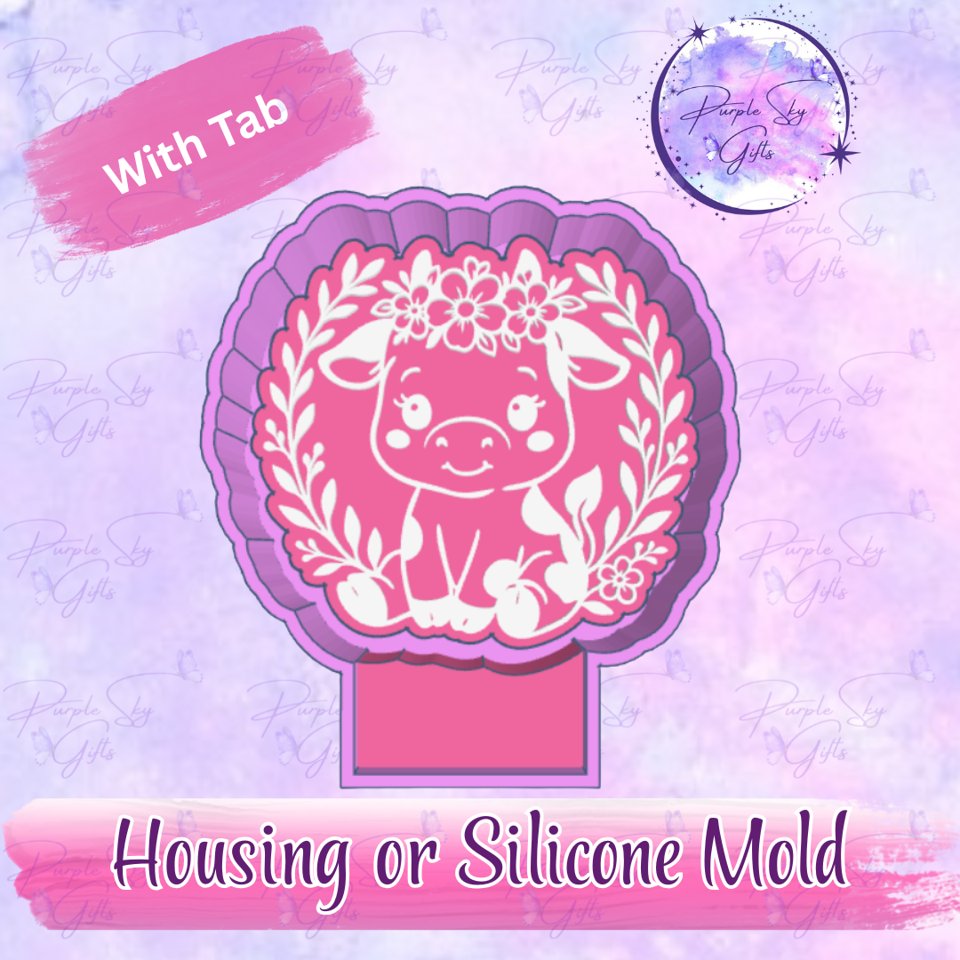 Floral Wreath Cow Freshie Mold Housing or Silicone Mold