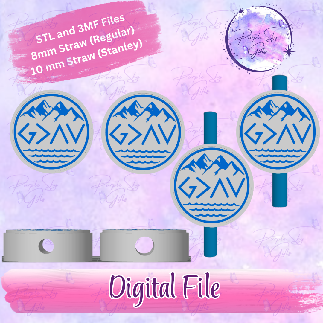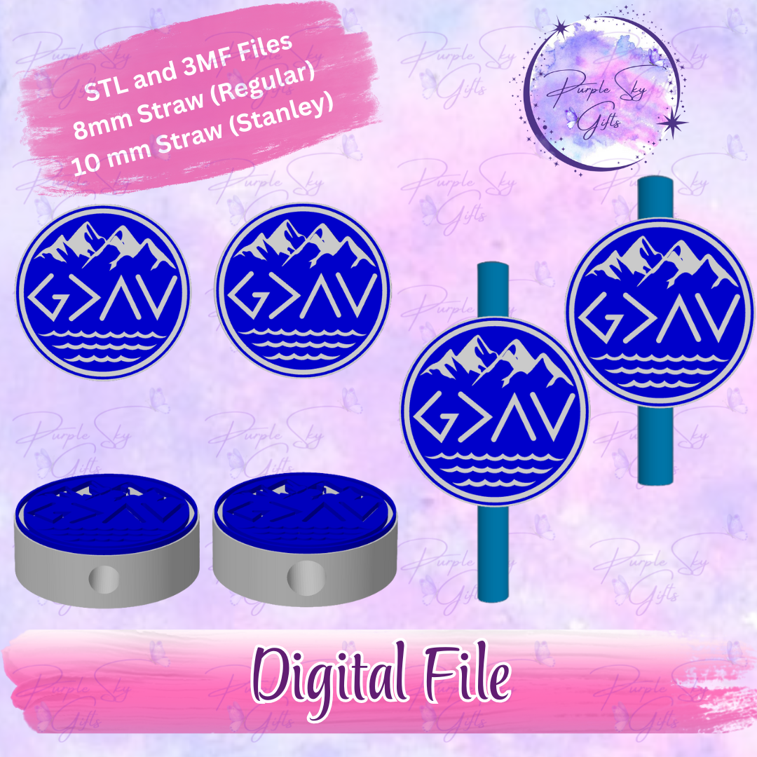 God Is Greater Than The Highs And Lows Mountains 8mm and 10mm STL and 3MF DIGITAL FILES For Straw Topper