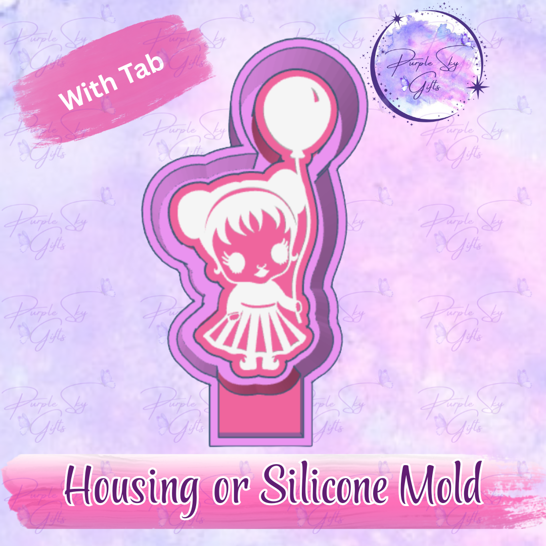 Gothic Creepy Doll Girl With Red Balloon Freshie Mold Housing or Silicone Mold