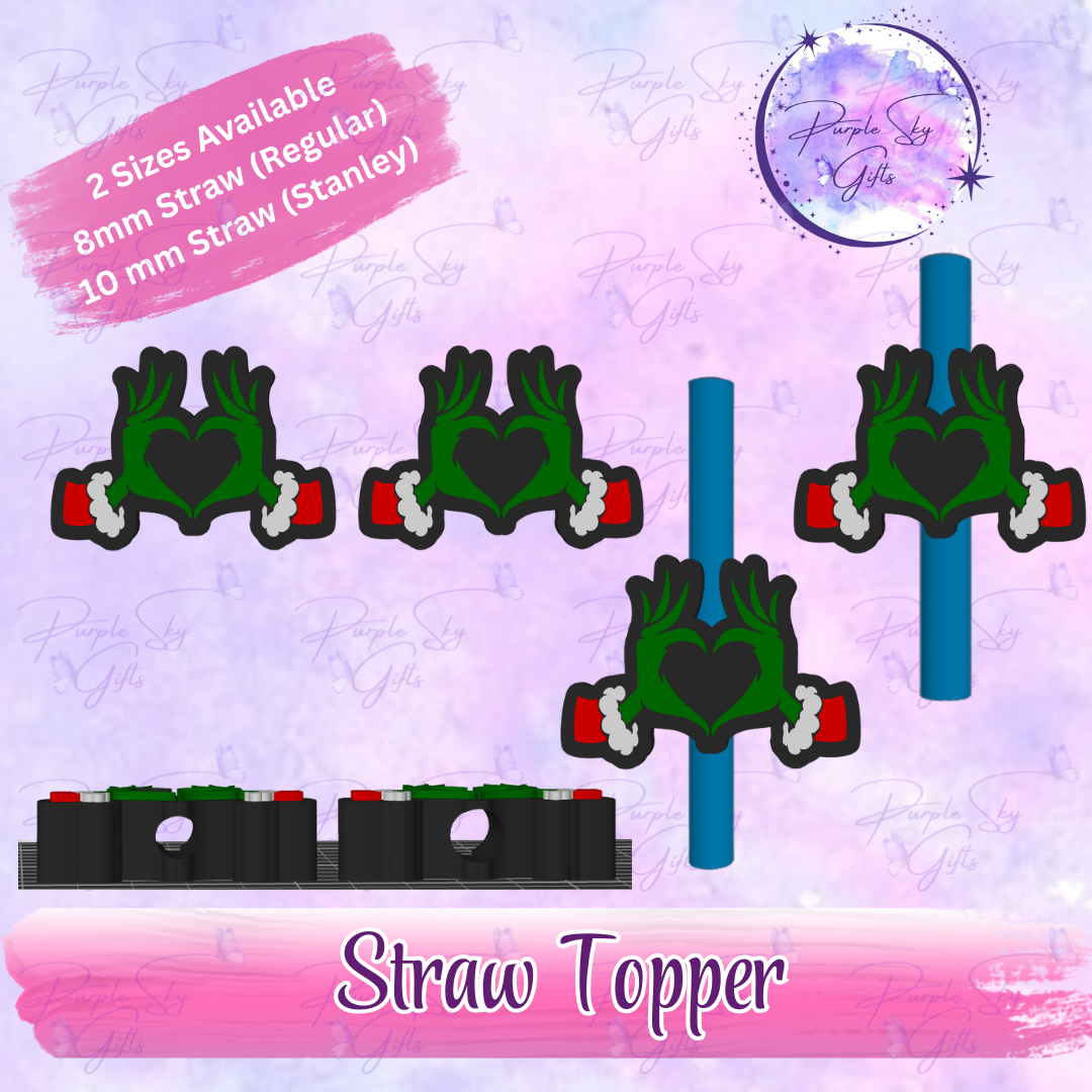 Green Guy Heart Hands Straw Topper
