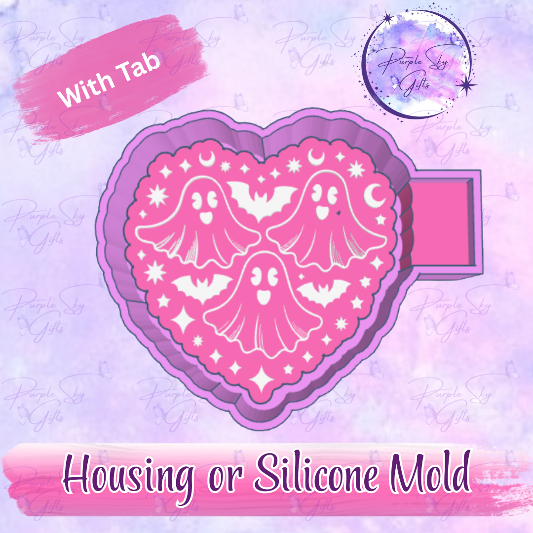 Heart Bats and Ghosts Halloween Housing or Silicone Mold
